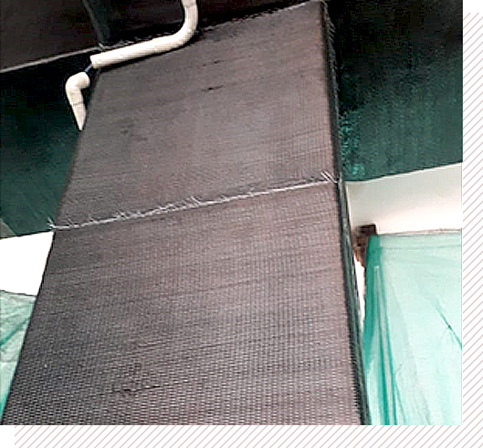 Unlike traditional retrofit or reconstruction techniques that require demolition and reconstruction of part or whole failing structures, Carbon wrap goes right over the existing substrate. This minimizes disruption during repair and saves significantly on installation time and costs. Applied in the form of a flexible fabric during installation, it is then saturated with a resin matrix, allowing it to harden to a strong, unyielding material with a strength-to- weight ratio that exceeds fifty times that of steel.
