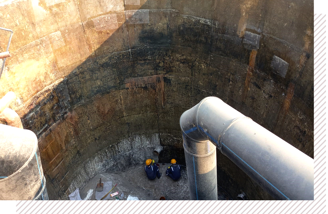 The acidic nature and corrosive environment of the raw materials used in the manufacturing process, caused huge damage to the ETP tanks linings, conditioning tanks, drainages, etc. To maintain the smooth working of the plant, one month shutdown was taken to carry out the repair work of the identified locations.